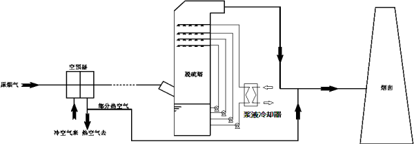 煙氣經漿液換熱冷卻降低煙溫降低3-5度,絕對濕度降低;在空預器出口或引風機出口布置煙氣降溫換熱以提取煙氣熱量,