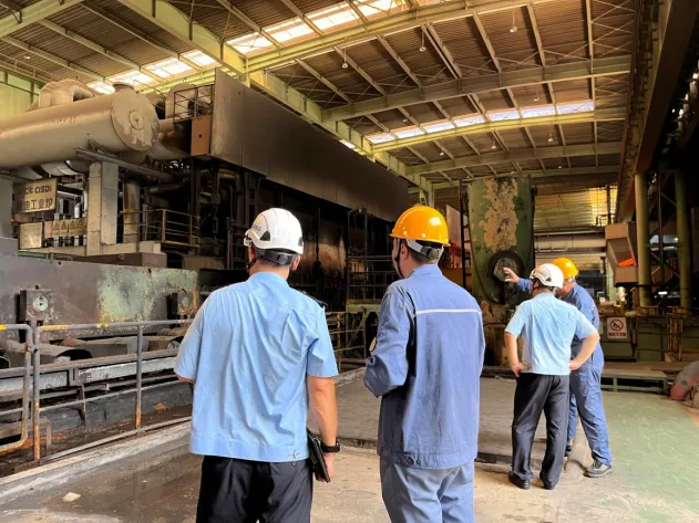 整理一下制服,佩戴好執法記錄儀和安全帽,南京市生態環境綜合行政執法局三級主辦劉方和四級主辦柏光亮迅速下車,直奔當天首個檢查點——熱軋車間。