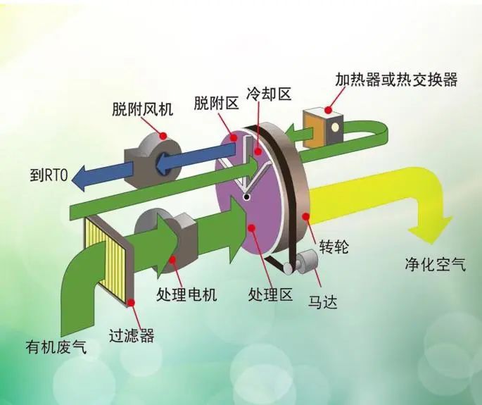 針對沸石轉輪的應用,常見的組合工藝有沸石轉輪+燃燒系統(TO/RTO/CO/RCO),沸石轉輪+活性炭固定床吸附+冷凝、沸石轉輪+冷凝(NMP回收)等。